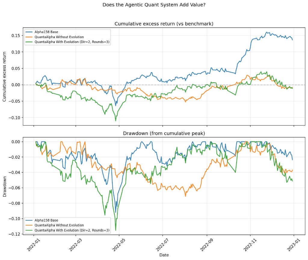 We ran a controlled experiment with QuantaAlpha: Alpha158 baseline vs LLM factor mining vs evolution. The backtest results offer a sobering perspective.